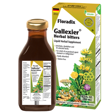 For thousands of years, bitters have been used to support healthy digestion. Gallexier® Herbal Bitters feature medicinal plants that have bitter substances like Artichoke, Dandelion, Turmeric and Fennel. With fruit juice and herbs, this formula is perfect as part of a meal or as a post-meal digestive.