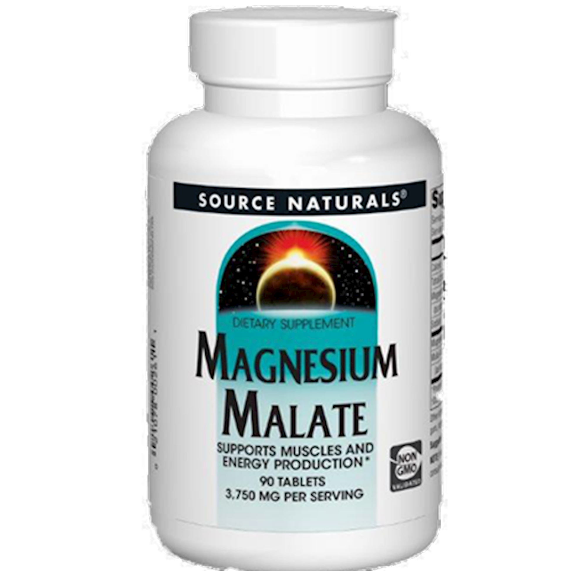 Source Naturals Magnesium Malate is a compound of magnesium and malic acid. It supports proper muscle function, cardiovascular health, and energy production. Malic acid is a natural fruit acid that is present in most cells in the body and is an intermediate in the Krebs cycle, where energy is captured during the metabolism of carbs and fats. Magnesium is an essential cofactor for over 300 enzymatic reactions in metabolism, ATP synthesis and energy production. Magnesium plays important roles in muscle relaxation, because of its function as a cofactor for enzymes and because of its ability to counterbalance calcium in the cell.*